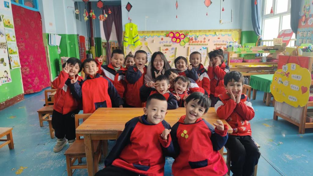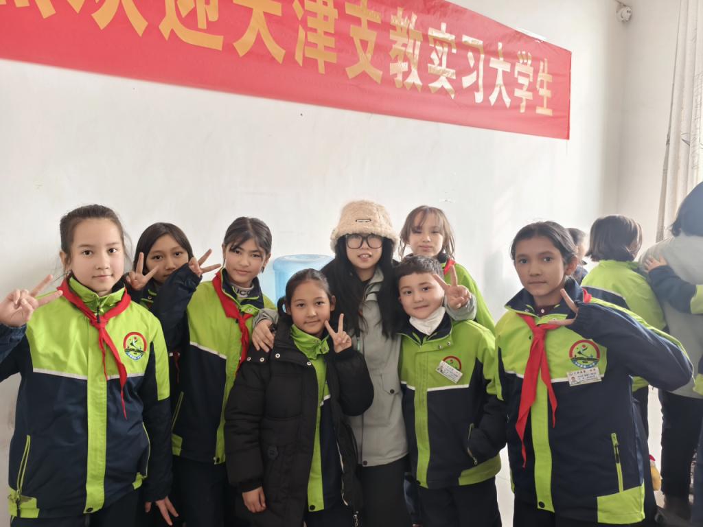 过去的103天里,437必赢会员中心的援疆支教团学生们远离家乡,深入和田地区的幼儿园、小学和初中,充分发挥自己的英语特长,为当地的孩子们带去了生动有趣的英文课程。她们不仅教授了基础的英语知识,更通过一对一英语辅导的形式,精准施教,助力学生快速进步。为拓宽当地孩子们的视野和兴趣,支教学生还积极担任了小学美术社、合唱社、话剧社的指导老师,不仅教授孩子们绘画技巧、音乐知识和表演艺术,还鼓励他们勇敢表达自我,激发创造力和团队合作精神。在支教过程中,学生们与当地孩子建立了深厚的友谊,共同度过了许多难忘的时光。